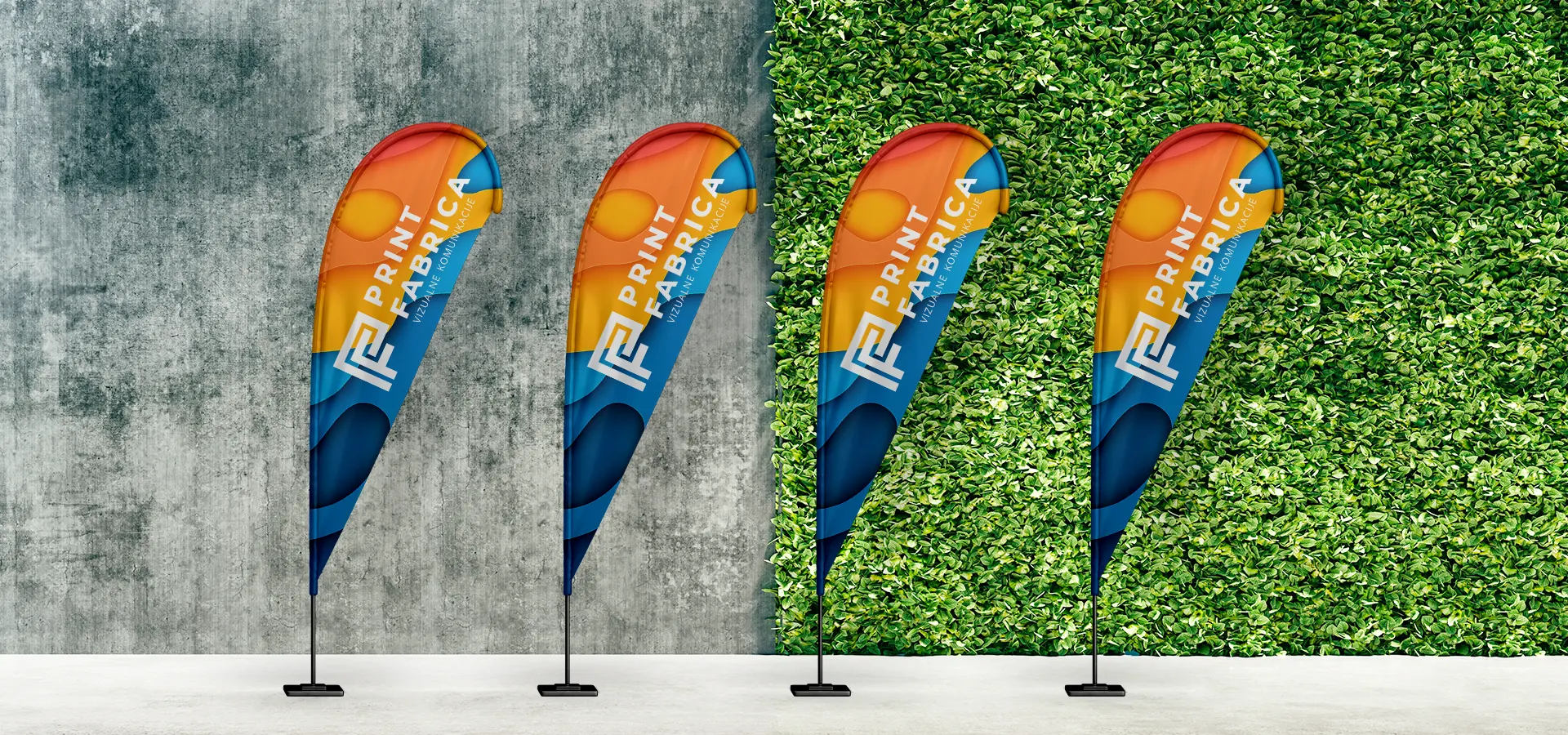 Gre za beach flag stojala v kompletu – atraktiven izdelek, ki s svojim videzom pritegne poglede in poskrbi za izjemno vidnost vašega logotipa, imena ali sporočila. Z več kot 15 velikostmi, različnimi oblikami in številnimi podstavki, pa so možnosti praktično neomejene.